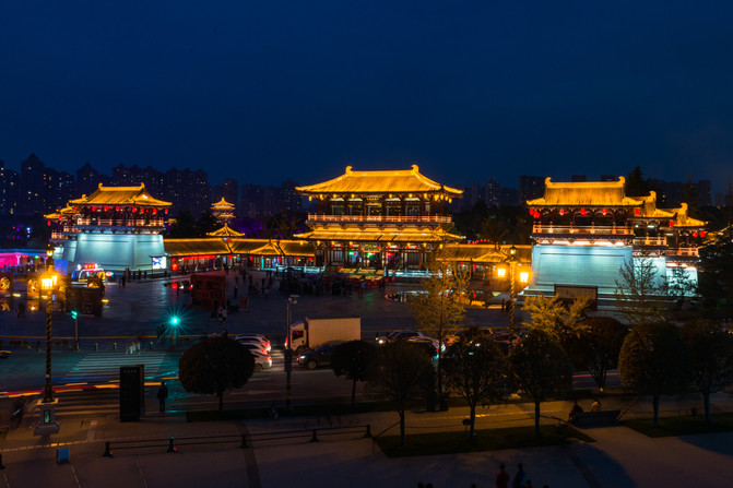 El encanto de Xi 'an no se detiene en el antiguo poema de Yangna durante el día. Por la noche, la prosperidad de Xi' an comienza a extenderse. Desde la dinastía Tang hasta el dinero en efectivo, Xi 'an es una ciudad que nunca duerme. Frente a la plaza del Templo Ci 'en, hay más gente que durante el día y es animado.