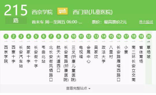 El autobús que parte de la Academia de Xijing tiene una distancia de 18 kilómetros, que pasa por el círculo comercial más próspero de Xi 'an, como el puente Zizikou que conecta el puente Jinjiang y otras visitas a la vieja calle, aunque es menos de 200 metros corto, pero es un lugar de reunión de la comida de Xi' an. Salsa en polvo, carne al vapor en polvo, sopa de pimenta, carne crujiente... Una noche, la gente está llena de ruido y es animada. La calle Guangji es también una calle antigua bien conocida por la gente. Los edificios antiguos aquí nunca carecen de la atención de la gente. Los turistas de otros lugares deben perforar la tarjeta de la torre del reloj, la ciudad de caballos de mulas donde los jóvenes se reúnen, el famoso círculo comercial de la pequeña villa, la multitud siempre está bulliciosa, que también es una de las tarjetas de visita más brillantes de Xi 'an.