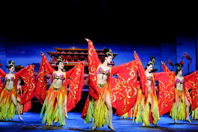 "Da Tang Shengshi" reproduce la prosperidad de ese momento. Las mujeres vestidas con trajes de la dinastía Tang danzan la postura de Yang Na en el escenario, lo que es muy atractivo. La ropa magnífica, las luces hermosas, las mujeres hermosas y conmovedoras, la vista simplemente no puede irse, quieren cruzar de vuelta a la dinastía Tang, presenciar la prosperidad de la ciudad de Chang 'an.