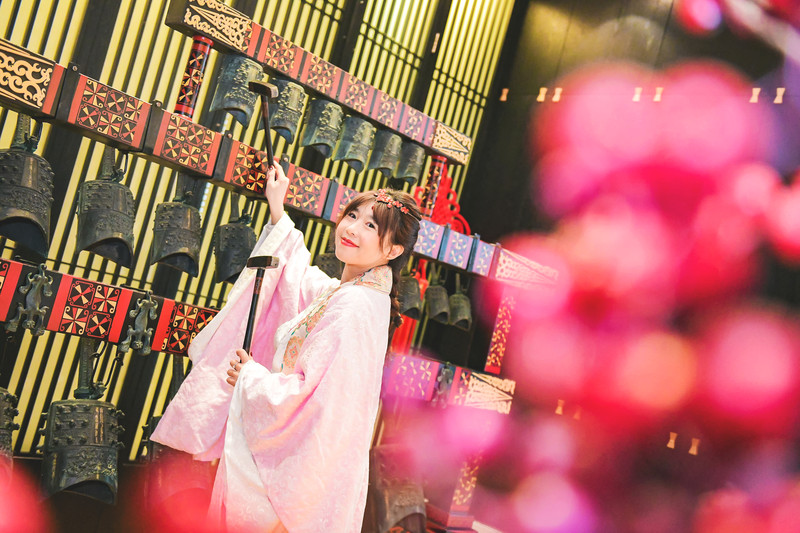 Antes de la comida, también puede cambiarse de ropa de la dinastía Qin de forma gratuita, tocar el piano y tocar la campana para un divertido cosplay.