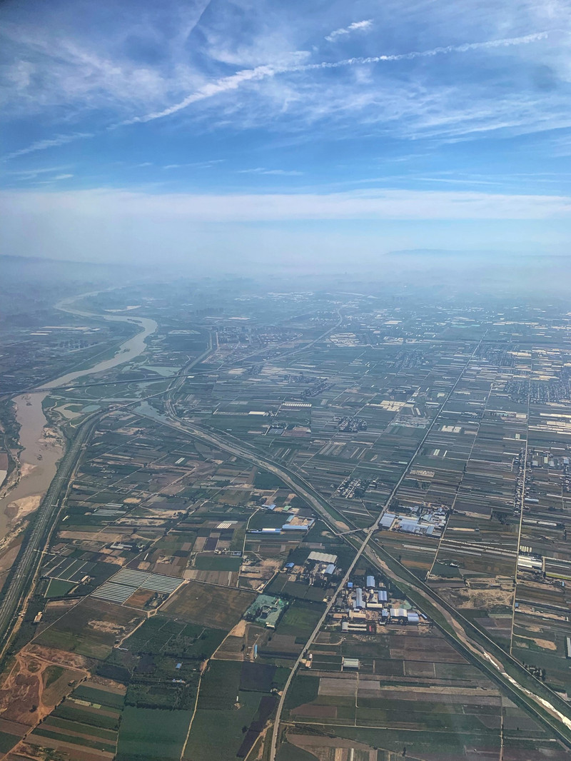 Esto es cuando el avión está bajando, se estima que está a punto de aterrizar en el aeropuerto de Xianyang, en ese momento suspiró el terreno plano, cuadrado y ordenado, nunca había visto este tipo de terreno, especialmente tomé una foto.