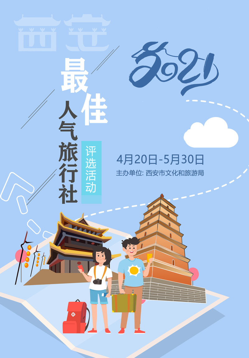A fines de mayo, la clasificación de selección se publicó durante 7 días (días naturales) en el sitio web oficial de la Oficina de Cultura y Turismo de Xi 'an y la cuenta pública de la Voz de la Cultura y el Turismo de Xi' an. No hay objeción a la publicidad, y las 80 mejores agencias de viajes, se otorgarán "2021 Mejor Agencia de Viajes Popular"; las 10 mejores agencias de viajes, se otorgarán "Top Ten 2021 Mejor Agencia de Viajes Popular". Los resultados de la selección se anunciarán en el sitio web oficial de la Oficina de Cultura y Turismo de Xi 'an y la cuenta pública de la Voz de la Cultura y Turismo de Xi' an.