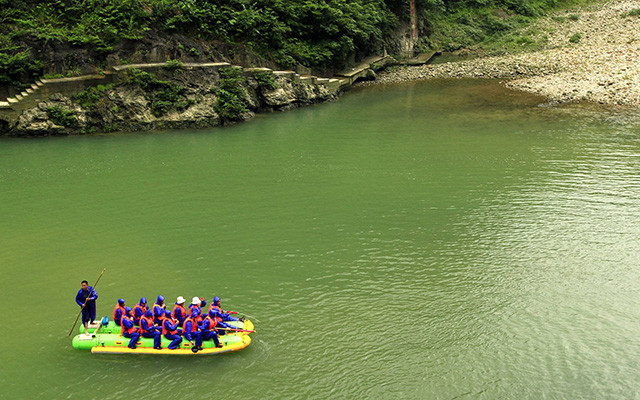 Debido a que el cañón, que es profundamente en el subterráneo más de 200 metros de profundidad, las olas de calor no pueden evitar que a lo largo del camino de más de una docena de cascadas grandes y pequeñas, la cadena de perlas se distribuye generalmente en ambos lados, el cañón de montaña decorado con nubes nubladas, el Mago de Oz encenado una cortina de un amplio bosque primitivo será aquí envuelto firmemente, como una capa verde, el viaje regional húmedo ambiente pequeño, la brisa fresca en el interior de este es el oeste de Hunan con "la primera deriva en el mundo" "Mengdong River Rafting"