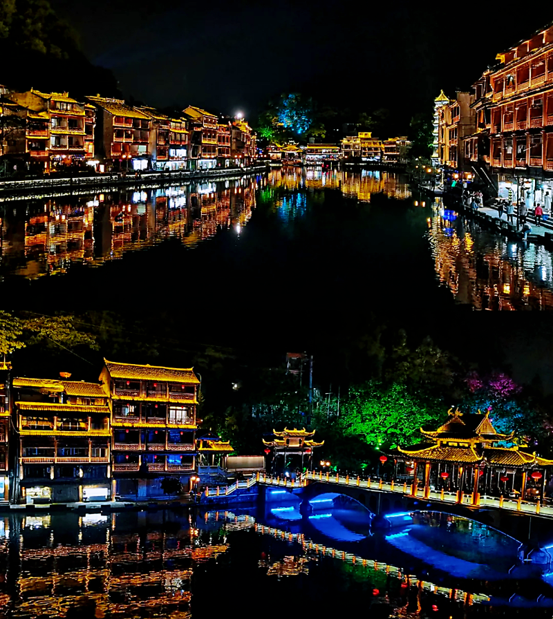 Tome el tren de alta velocidad a la estación de la ciudad antigua de Phoenix, el autobús de conexión No. 1 (7r) puede ir directamente a una plaza cerca del puente Honghong de la ciudad antigua de Phoenix en unos 20 minutos o puede tomar el autobús de levitación magnética, pero todavía tiene que caminar un tiempo para bajar.