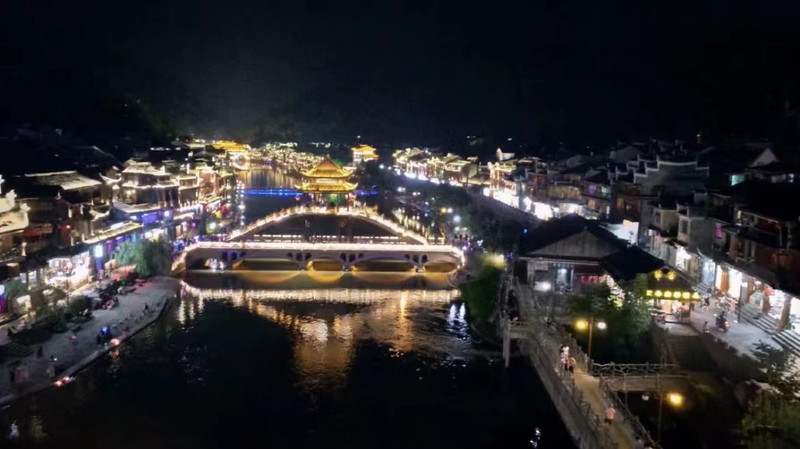 Durante el día, la ciudad está llena de energía, el tráfico es grande, los turistas son más, el negocio de fotografía junto al río Tuo es el mejor, lleno de popularidad, la calidad del agua del río Tuo debe mejorar, o la noche es cómoda para ver el agua