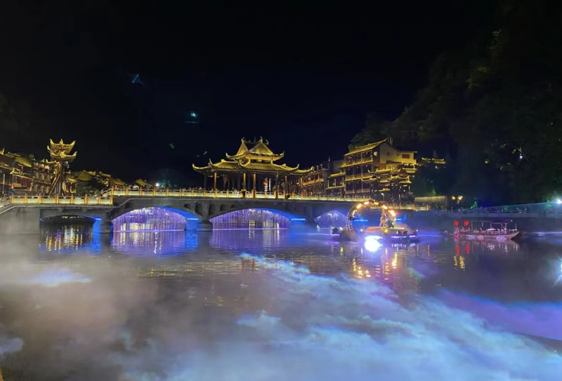 ¡Los depósitos se muestran en la antigua ciudad antigua en la pizarra de piedra azul, torre colgante, muralla antigua, etc! La tecnología se muestra en cortinas de agua de luz, proyección 3D a simple vista. La antigua ciudad de Phoenix por la noche es realmente imperdible.