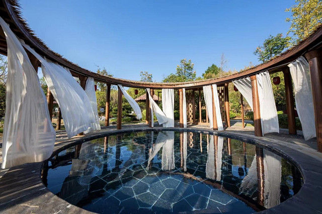 Hay 44 piscinas de aguas termales naturales dentro y fuera del centro de aguas termales de Hunan · Jiangnan. Diferentes piscinas de sopa se dividen en diferentes piscinas de aguas termales de acuerdo con sus funciones. Hay diferentes instalaciones de ocio, como sala de vapor al aire libre, aguas termales de pizarra, equipos de entretenimiento acuático, piscina sin límite, etc.