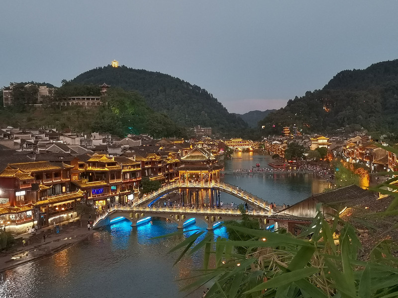 1. Panorama de la antigua ciudad de Phoenix, en el puente de Phoenix cerca de Nanhua Gate, puede tomar fotos de la torre de la puerta norte y el puente Hong, muy recomendado.