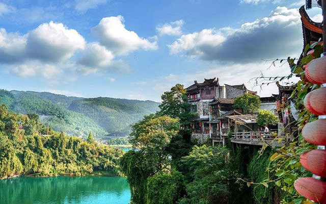 Por lo tanto, la ciudad de芙蓉, que tiene una profunda influencia en mi visión de la vida, debe ser vista personalmente. Llegó a las 5 p.m., a la vista, es la calle comercial de la ciudad de Wangcun, es decir, una calle de la antigua ciudad desarrollada por el turismo, a ambos lados de la calle hay casas de puertas de tornillo de Tujia recién construidas, linternas rojas colgadas en alto, revelando la escena común de los lugares turísticos de estilo chino. Un grupo de viajes de vagones, esta antigua ciudad milenaria renderizada animada extraordinario.