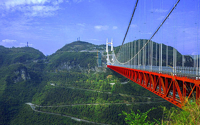 El puente de Yaozhai, también conocido como puente colgante extra grande de Yaozhai. Ubicado en el Gran Cañón de Detan, ciudad de Qiaozhai, ciudad de Jishou, prefectura de Xiangxi, provincia de Hunan, a unos 20 km de la ciudad de Jishou, es una de las ocho autopistas clave planificadas por el estado, el proyecto clave de la autopista de Changsha a Chongqing. El proyecto es un puente de doble uso para carreteras de doble piso, pasillos turísticos y puentes de autopistas de cuatro carriles. El esquema del puente es un puente colgante de viga de acero de un solo tramo con una longitud total de 1073.65 m, el tramo principal del puente colgante es de 1176 m, la altura de la cubierta del puente es de 350 m desde el fondo del cañón y solo 70 - 100 m desde el borde del acantilado. Creó: el puente de 1176 metros de tramo principal, cables de suspensión a través del cañón; la primera adopción de la torre y la viga completamente separada del esquema de diseño estructural; la primera adopción de "método de deslizamiento de la vía" para erigir vigas de acero; la primera adopción de la estructura de cables de anclaje de roca y fibra de carbono como refuerzo pretensado, cuatro primeros en el mundo. Es de gran importancia mejorar en gran medida la situación actual del tráfico en las provincias de Jiangxi, Jiangxi y Guangdong.