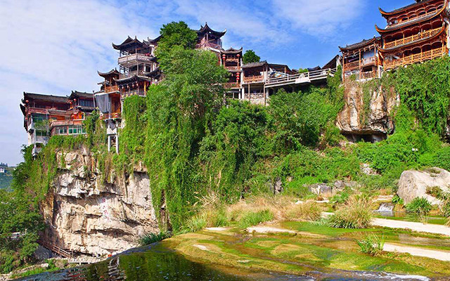 La ciudad de芙蓉, una antigua ciudad milenaria colgada de una cascada.