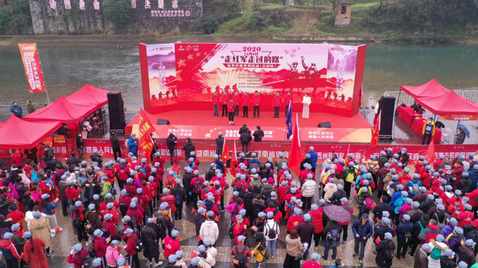 La ceremonia de apertura de la serie de actividades a pie (estación Jishou) de 2020 "Caminando por el camino del Ejército Rojo" se celebró en la Plaza Binhe de la ciudad de Jishou. Fu Liming, director del Departamento de Deportes de masas de la Oficina Provincial de Deportes de Hunan, asistió a la actividad y anunció la apertura de la actividad. Más de 1200 entusiastas de deportes al aire libre de todo el país participaron en la actividad.