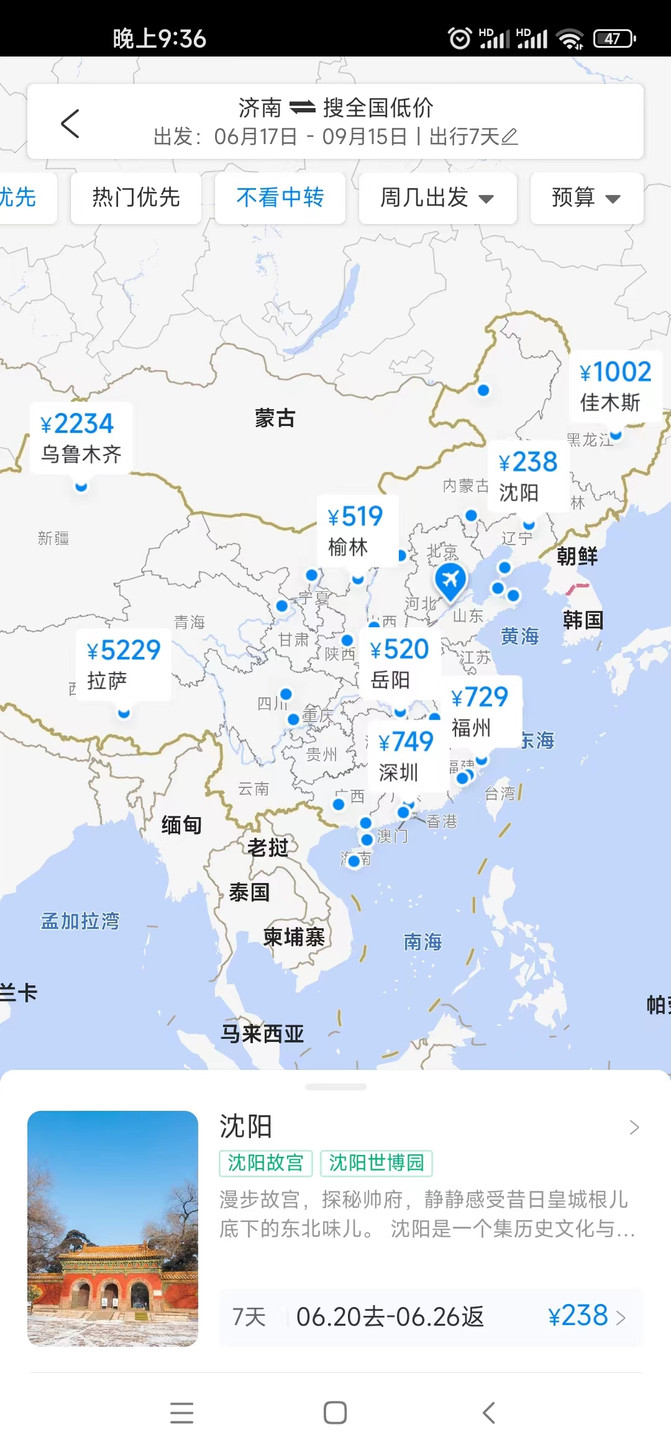 Los cuidadosos de Ctrip se organizarán en orden ascendente de acuerdo con el precio del boleto, y al mismo tiempo marcarán los lugares turísticos de la ciudad.