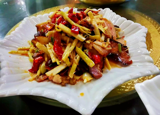 Bacon de bambúLos brotes de bambú agregan el aroma único del tocino, y el tocino absorbe el cristal de los brotes de bambú, que se complementan mutuamente y es una comida rara.