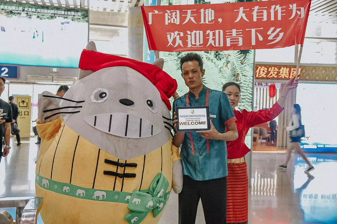 Al salir del avión, vi al Jefe de Conserjería Niki Teng con la encantadora mascota del hotel, el dragón Xiao Yan, la "recogida exclusiva", una vez que salí de la puerta para verlos allí, muy cálido. Esta actividad del día de concierge característico intercontinental, también llegamos al Xishuang Banna Intercontinental Resort Hotel en un automóvil exclusivo, acompañamos al conserje Niki Teng, percibimos la precipitación de 70 años y la ceremonia de bienvenida de la familia Dai, lo que hace que la gente se sienta más amable ~