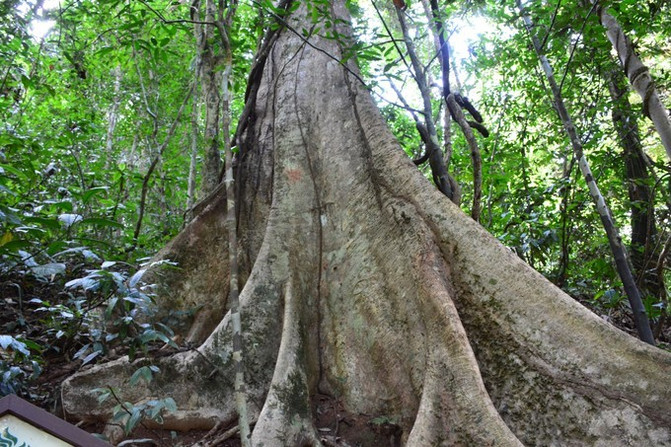 Tres árboles gigantes forman una maravilla de la selva tropical: el "fenómeno de la reincorporación vegetal". Mirando el árbol por delante, cuando creció gradualmente, dejó el caballo de la infancia que creció con ella y se lanzó a los brazos del árbol más alto al lado. La naturaleza interpretó de manera tan realista las diversas visiones de la sociedad humana, lo que fue impresionante. Estos tres árboles son árboles de banyan, la corona alta, pero el sistema de raíces es muy poco profundo, para apoyar el gran cuerpo del árbol, desde el tallo o rama crece raíces adventicias o raíces aéreas, la punta de la raíz aéreas se extiende en el suelo, la parte subterránea crece rápidamente en el sistema de raíces, la parte sobre el suelo crece en el tronco, cuando hay otros árboles al lado como punto de apoyo, también no duda en volver a casarse, y junto al árbol fusionado en una familia, este es el fenómeno extraño de volver a casarse.
