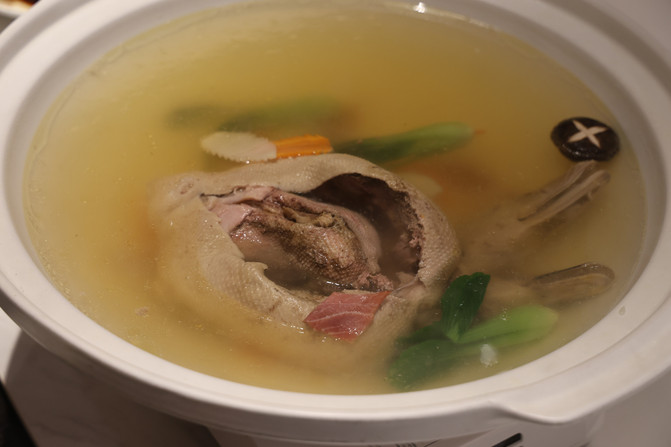 En primer lugar, hablemos de este plato. Huaiyang tiene tres juegos de patos: el pato del toro está cubierto con un pato de correo alto, y el pato de correo alto está cubierto con palomas de leche. La sopa de este plato se degusta tres veces. Después de degustar la primera vez, rasgue la piel para revelar la siguiente capa de carne, y luego hervirla y beberla. El sabor es cada vez más fuerte. Beba sopa tres veces en un plato, lo que es preciso es una experiencia diferente de papilas gustativas. Eso es demasiado delgado.