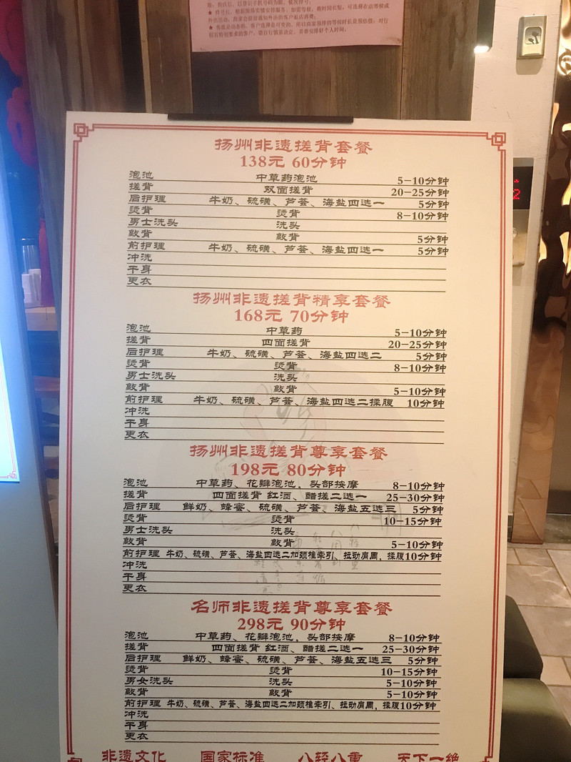 Lavar la espalda (tienda insignia de Yangzhou, el precio puede ser alto, pero dado que muchos de los clientes son locales, puede ser un precio justo en el mercado, personalmente creo que todavía vale la pena.)