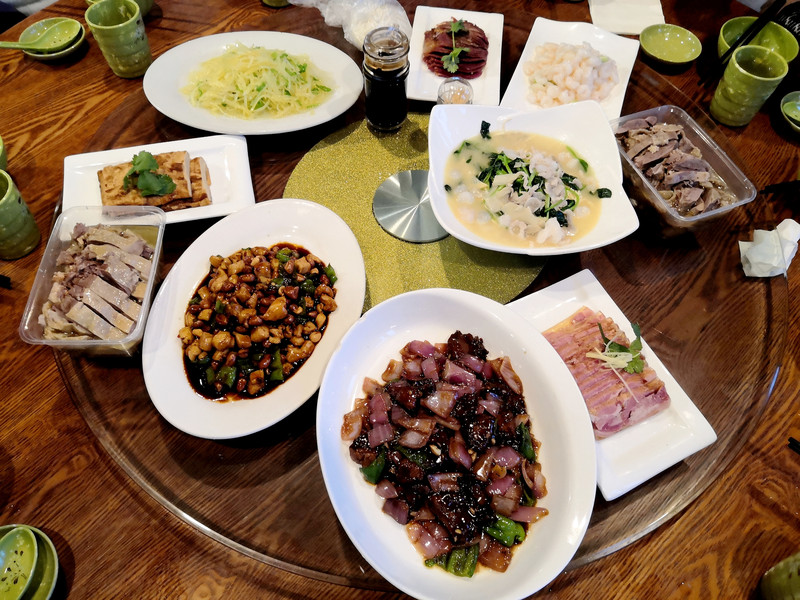 Después de la última parte, el templo Daming no fue a Chengdu, tomar el autobús No.25 a la parada de puerta barata, caminar de vuelta al hotel, reservar la cena en la casa de té del jardín al lado del hotel, regresar al hotel para tomar un baño y descansar por un tiempo, bajar las escaleras a las 6 para cenar, más de 400 yuanes, hay ganso de agua salada, nitro de cristal, carne de res en salsa, semilla de arroz limpio, pollo de palacio, seda seca hervida, etc., barato y bueno.