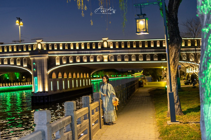 Este lugar construyó directamente una antigua ciudad del canal con cortinas de cielo y edificios, casas de té de vinos y pequeños puentes de agua corriente, que reproducen la prosperidad del comercio a lo largo del canal, ¡es muy adecuado para tomar fotos con ropa han!