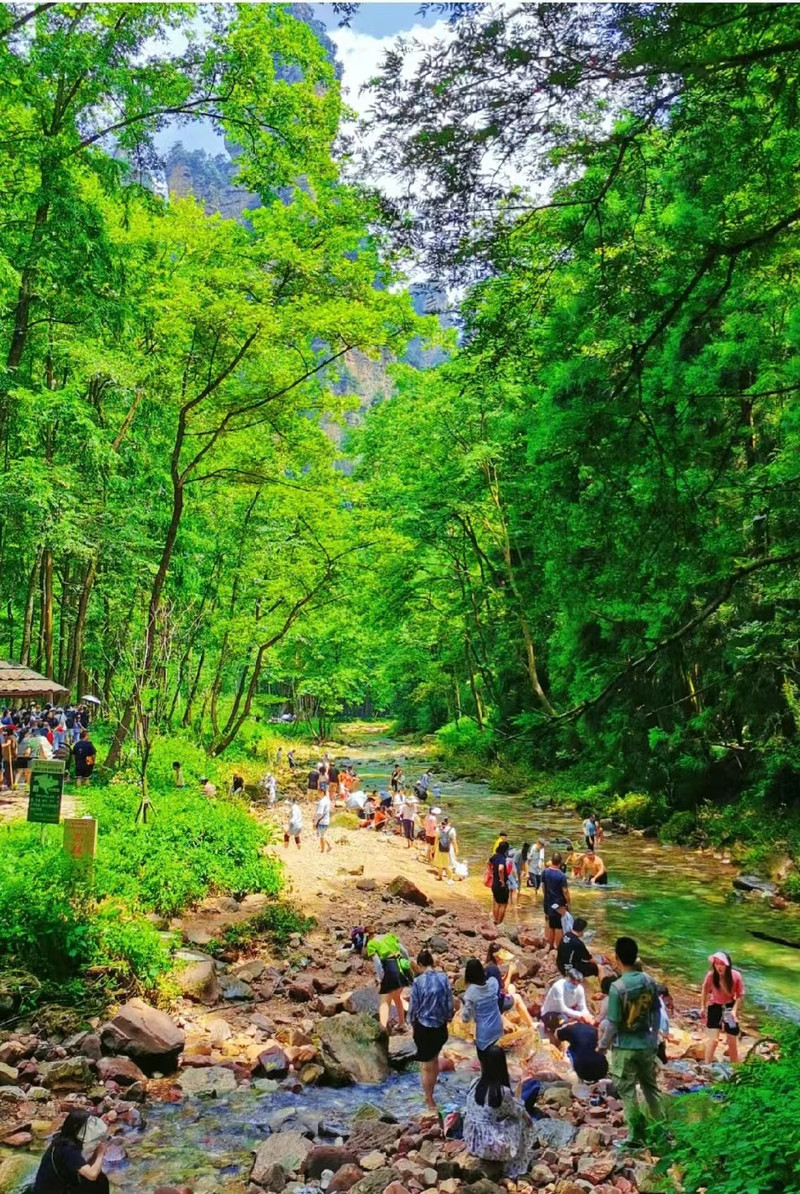 Wulingyuan a la puerta sur del parque forestal está a 18 kilómetros y 23 minutos en coche. Puede tomar un taxi o tomar un autobús de ida y vuelta desde la estación de autobuses de Wulingyuan, tarifa de 10 yuanes, normalmente 7: 30 ~ 17: 00 alrededor de media hora, temporada alta ligeramente ajustada