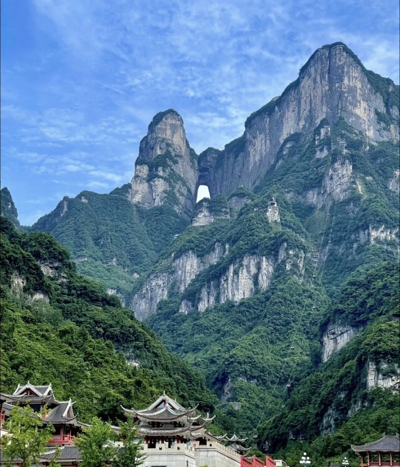 "Siempre ir a Zhangjiajie, soplar la brisa de la noche del río Lishui, caminar por el paseo marítimo de la montaña Tianmen, sentir el verano del parque forestal". Una lluvia ligera con la brisa de la mañana en la puerta del cielo, como el cielo de un difunto, no debe atrapar picos solitarios aquí, solo con las estrellas.