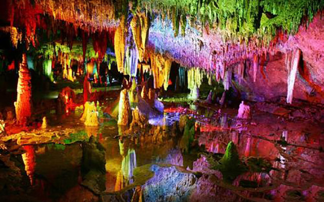 Huanglong Cave es la cueva cárstica subterránea más maravillosa del mundo y es elogiada como "laberinto subterráneo". Las innumerables estalagmitas de pilares en la cueva tienen diferentes formas, que presentan un maravilloso espectáculo infinito, cristalino, colorido y pintoresco.