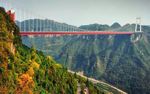 En el oeste de la provincia de Hunan, hay una línea de puente de 1779 metros de longitud total, el puente principal de 1414 metros de longitud total, y es una autopista construida sobre el Gran Cañón, es el puente de Yaozhai El puente de Yaozhai es un paso de alta velocidad dentro de la prefectura autónoma Tujia Miao de la provincia de Hunan, se encuentra sobre el Gran Cañón de Dedan. "El cielo y la tierra son los volúmenes de pintura más grandes, dibujar en las montañas, dibujar en el agua, y luego dibujar un arco iris largo" es la descripción más apropiada para el puente de Yaozhai.