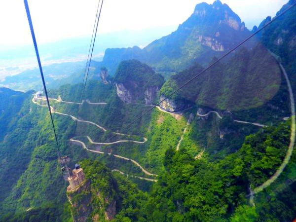 Aquí está el teleférico a la montaña Tianmen. Este es el camino de la guarnición, la montaña en la distancia es hermosa, el paisaje es pintoresco, ¡la gente es aún más hermosa!