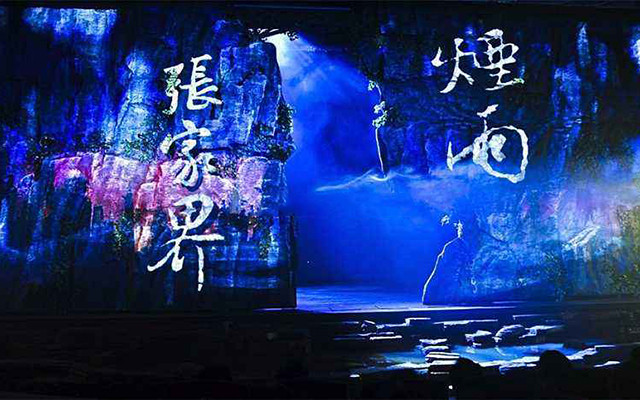 Entrar en la montaña es la primera parte del espectáculo Con la apertura de la cortina automática, la pantalla LED apareció en la montaña de Zhangjiajie, con el cambio y el movimiento de la lente, apareció la antigua y mágica cabaña. Entremos en las aldeas de Tujia, Bai y Miao que viven aquí durante estas generaciones. Hermosas imágenes se despliegan lentamente en las profundidades de esta montaña nublada de humo...