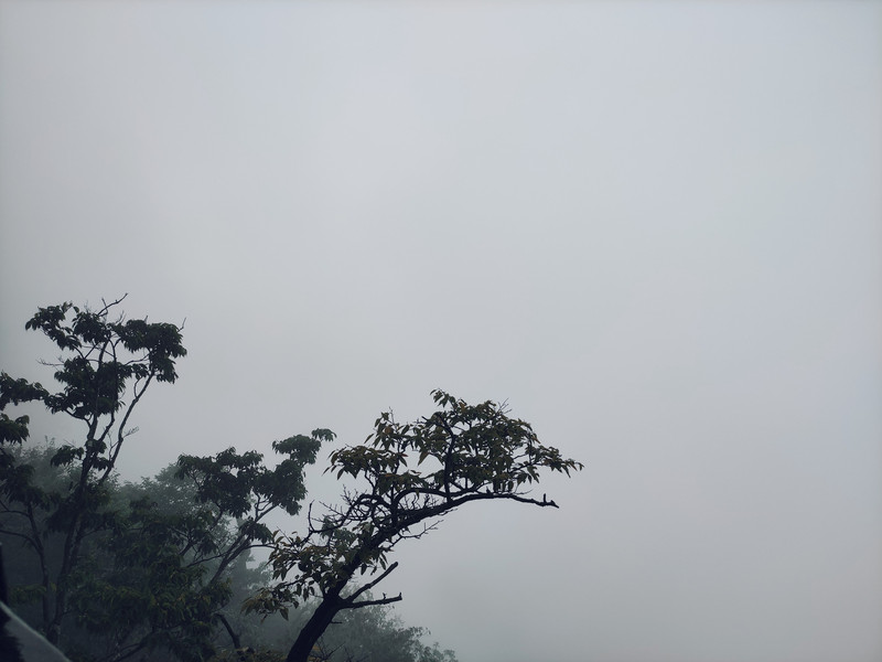 Aunque la niebla está llena y la visibilidad es muy pobre, pero siempre y cuando tenga suficiente paciencia, ha estado esperando en la plataforma de observación, un fuerte viento sopla, puede disipar mucho la niebla. Las montañas cercanas se ven verdaderas.