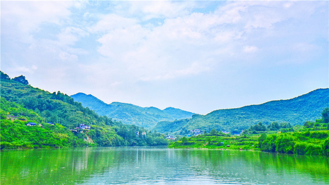 El río Maoyan se ve lejos, montañas, una montaña conectada a una montaña, el agua en la montaña es verde, varias familias adornan la ladera de la montaña, el viento sobre la punta del bosque, los árboles en la montaña sonar. Aproximándome para sentarse en el bote de goma, descubrí que el río es tan ancho y rápido que serpentea entre las montañas a ambos lados, lo que es realmente una hermosa pintura paisajística.