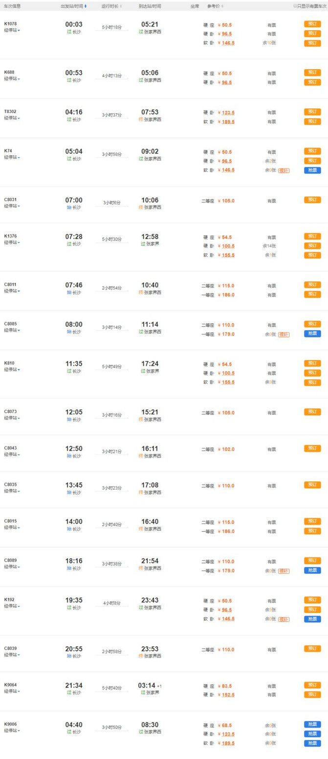 Hay muchas maneras de ir a Zhangjiajie desde Changsha. Puede tomar tren, automóvil, avión o conducir por sí mismo. Entre ellos, el tren más conveniente y asequible es tomar tren. Hay 8 trenes de Changsha a Zhangjiajie todos los días. El precio del boleto comienza en 54.5 yuanes y dura alrededor de 3 ~ 5 horas. El segundo es tomar automóvil. Hay autobuses que pueden llegar a Zhangjiajie desde la estación de automóviles sureste de Changsha. Hay un total de 36 autobuses que pueden llegar. El precio del boleto comienza en 119 yuanes y dura alrededor de 4 horas. No es muy rentable tomar un avión, el precio es relativamente alto, el peaje de autoconducción también es bastante alto. Además, Zhangjiajie solo tiene una parada de autobuses (estación central de autobuses Zhangjiajie),