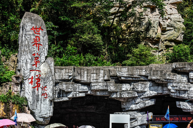En la entrada del ascensor se puede ver vagamente la pista de todo el ascensor y la montaña es vertical, apretado al ascensor en el acantilado más o menos da a la gente una sensación de miedo inexplicable, esto es realmente digno de ser la primera escalera en el mundo, a través de la experiencia finalmente encontró que tal nombre no está sin contenido de oro.