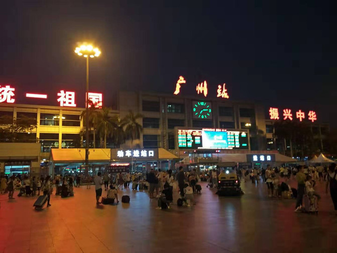 A las 16: 42 p.m., tome el tren ligero D7472 desde la estación sur de Xinhui hasta la estación sur de Guangzhou, que dura 45 minutos. Luego tome la línea 2 de metro para pasar por 15 paradas. A una hora de tomar el tren, simplemente comimos una cena en la sala privada al lado de la estación de tren, gastamos 218 yuanes / 7 personas; luego tomamos el tren K9036 a las 20: 04 - 09: 40 + 1 para llegar a Zhangjiajie, que duró 13 horas y 36 minutos para llegar a la estación.
