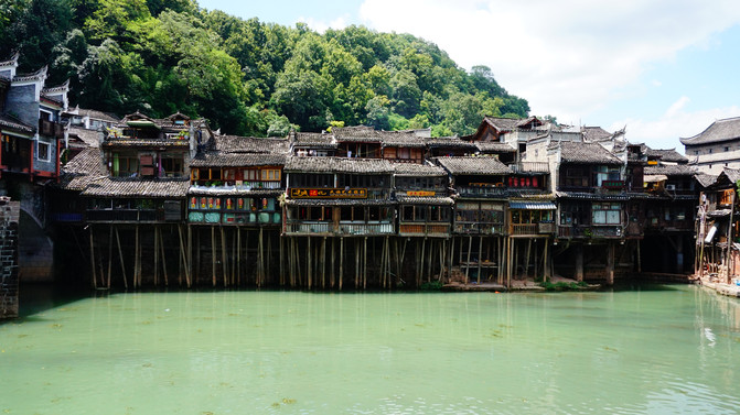 En la mañana del 28, condujo a la antigua ciudad de Phoenix, caminó por el antiguo camino a orillas del río Tuojiang, caminó a través de la roca de salto en el río Tuojiang hasta la torre de la puerta norte en la orilla opuesta. En ambos extremos de la antigua torre de la ciudad se construyen muros de arena roja púrpura a lo largo de la orilla del río. La pared tiene dos torres al este y al norte. Después de las vicissitudes, todavía es elegante y majestuosa. El canal al lado de la pared de la ciudad es muy poco profundo, y el flujo es suave. Se puede ver el agua y la hierba agitadas en Ruoboli. Volvemos desde el puente de madera y piedra al lado y navegamos hacia adelante y hacia atrás en el río para ver el hermoso paisaje a ambos lados.