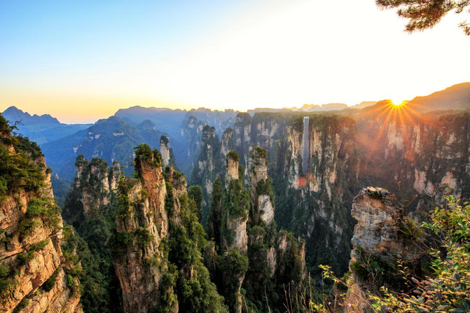 Yuanjiajie es el punto escénico central del Parque Forestal de Zhangjiajie, con un desarrollo relativamente perfecto, todas las instalaciones son muy completas, muchos lugares escénicos y representativos, y el paisaje también puede representar el paisaje único de arenisca de cuarzo de Zhangjiajie. Incluye el prototipo de la montaña flotante en la película "Avatar": la montaña Aleluya, el primer puente en el mundo, la escalera de nueve cielos, el puente Lianxin, el pabellón de la amistad sino-coreana, la tortuga de Dios pregunta al cielo, la plataforma de éxtasis y otros lugares escénicos.
