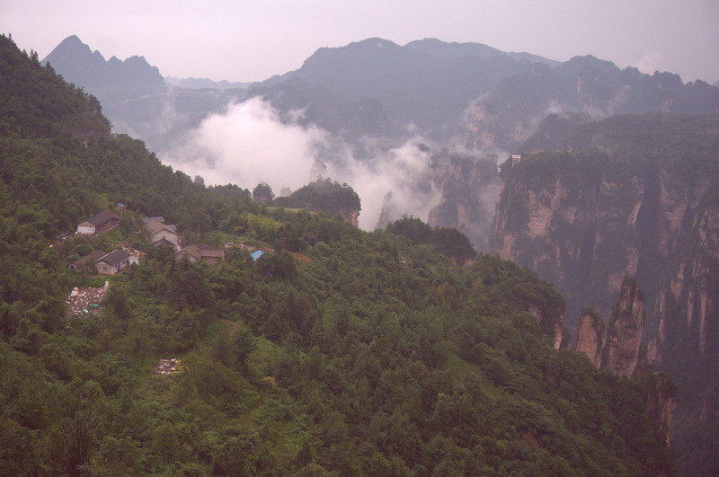 Después del desayuno, la lluvia fue mucho menos, el padre del jefe nos llevó a la estación de San Bifurcación, en el camino encontró un lugar para detenerse en el borde de la carretera, dijo que es un buen lugar para ver el mar de nubes, en general, en Zhangjiajie si llueve la noche anterior, puede ver el mar de nubes al día siguiente.