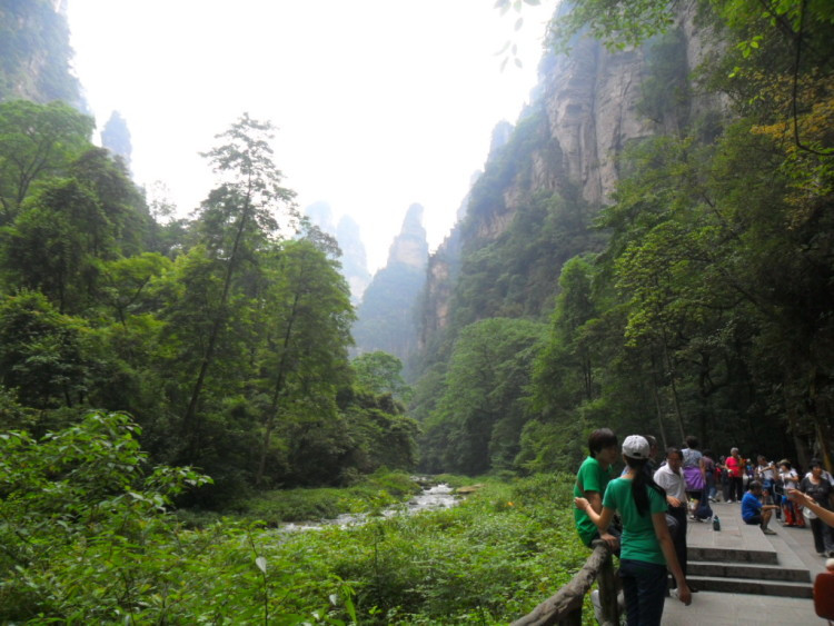 Luego caminamos al parque del dragón, giramos apresuradamente alrededor del mediodía, terminamos la comida china en un pequeño restaurante en la cima de la colina. Luego, tomamos el teleférico y bajamos la colina y fuimos a la Galería de Diez Mile. Hay muchas personas que toman el tren pequeño para ver la Galería de Diez Millas y estamos caminando. El camino es muy estrecho, el río a la izquierda ya no tiene agua corriente, se dice que una inundación desvió el río Yin en la fuente, y desde entonces solo habrá agua en la galería de diez millas de lluvia fuerte. Sin embargo, los picos a ambos lados se elevan, especialmente los "viejos recolectores de medicamentos", "tres hermanas" y así sucesivamente, son muy imágenes. Después de recorrer la Galería de Diez Millas, nuestro viaje en el punto escénico de Zhangjiajie también se declaró terminado, y me siento un poco pendiente.
